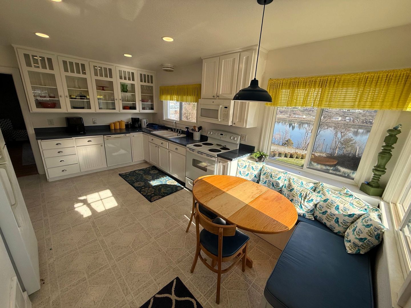 • Enjoy a quiet morning cup of coffee from the charming breakfast nook overlooking the river