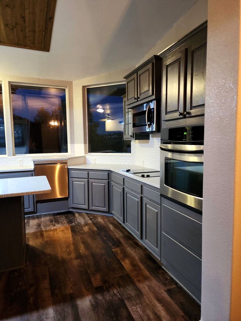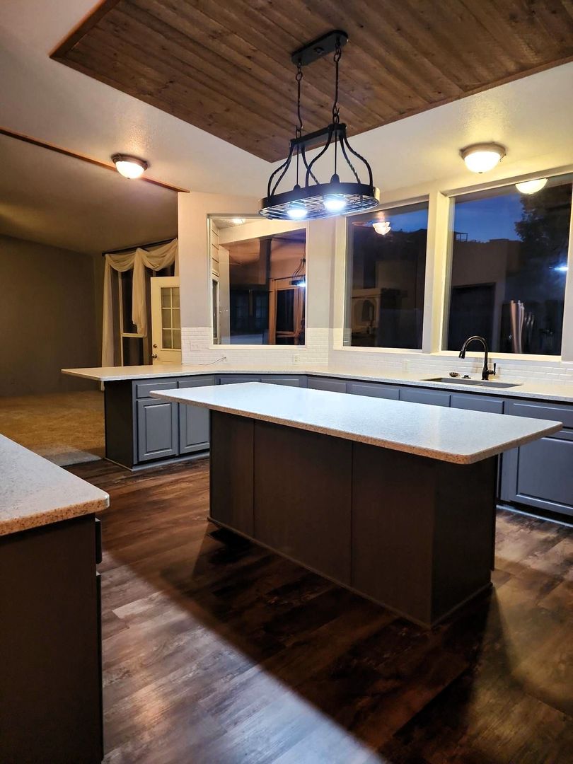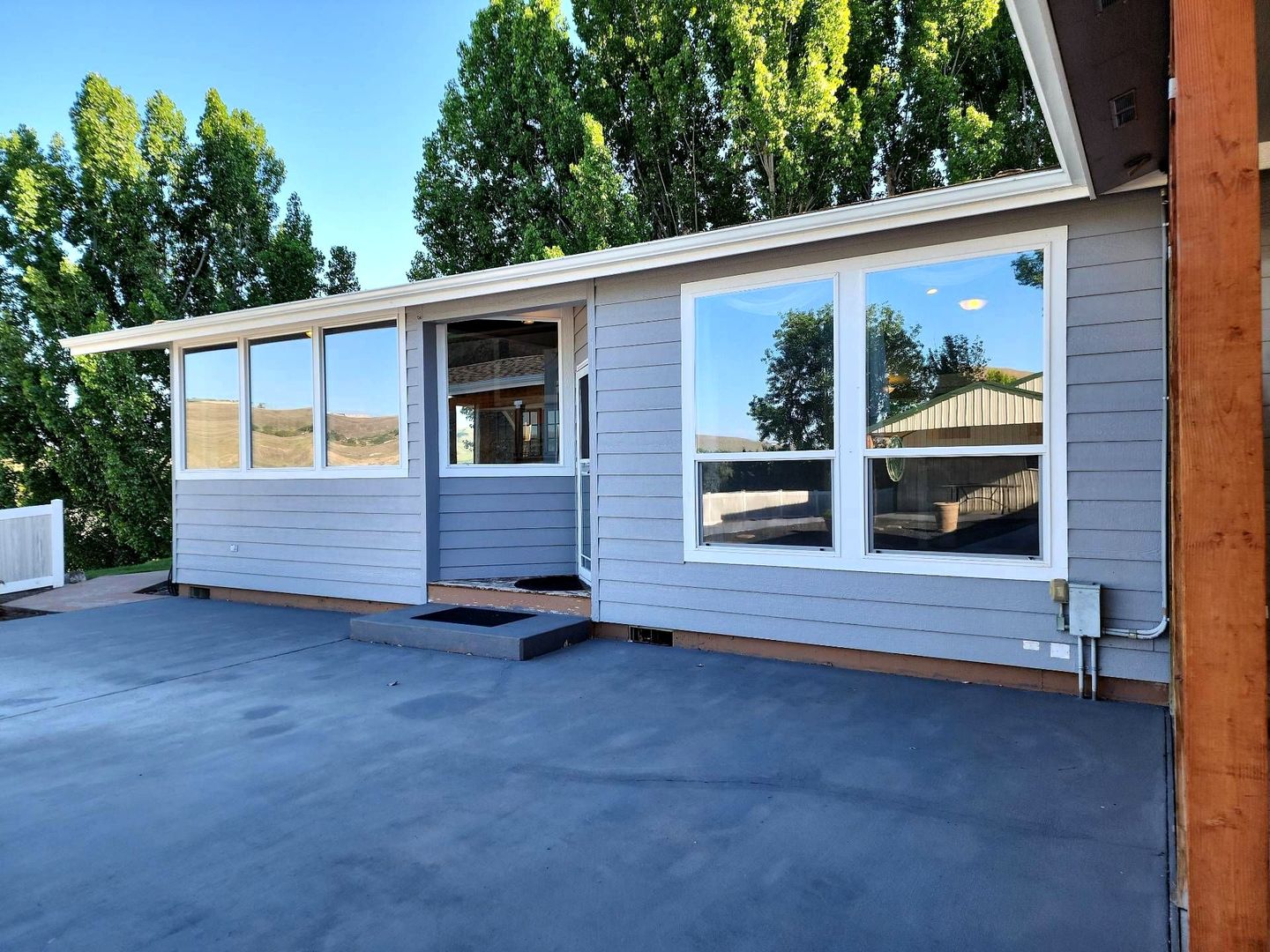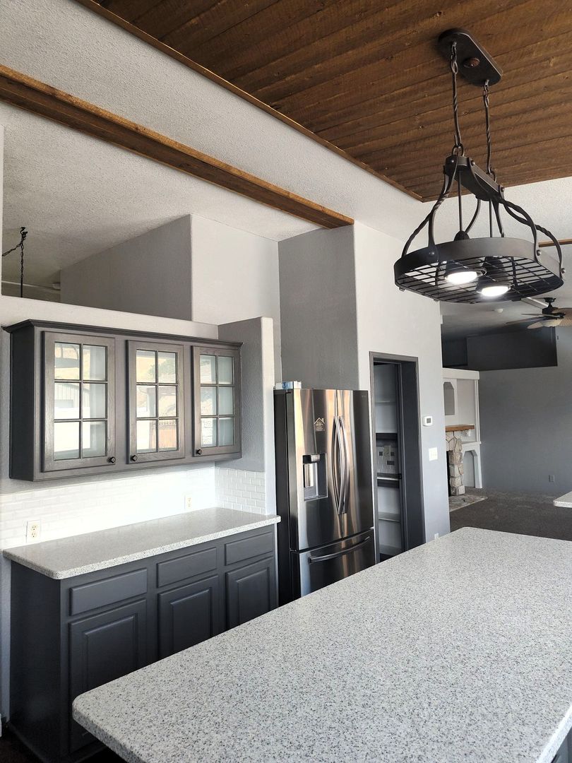 The oversized kitchen is perfect for everyday living and entertaining, featuring a large island, walk-in pantry, and modern appliances including a wall oven, raised dishwasher, refrigerator with bottom freezer, water and ice dispenser, and garbage disposal. Just off the kitchen and family room, you’ll find a generous concrete patio—ideal for relaxing or hosting while enjoying the view.